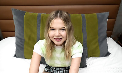 This POV casting video starlets an 85 lb blonde teen inexperienced