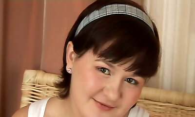 Fat brown-haired girl with big boobs in solo video