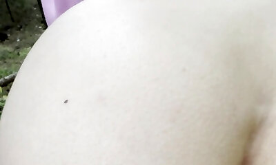 Outdoor quickie anal penetration with a huge spear for a Russian Milf Blonde
