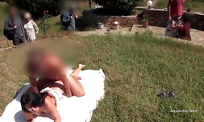 Public fuck-fest on the meadow! Ass and cunt creampie and facial cumshot