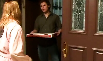 While her man is downstairs the black-haired cougar with big mounds bounces her big ass in reverse cowgirl