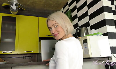 AuntJudys - Gorgeous 40yo Super-Cougar Natie gets off in the Kitchen
