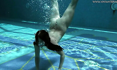 Blonde babe Okuneva shaved fuckbox underwater swimming