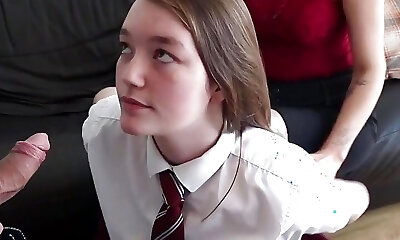 Latina babe got pounded by two dicks in a sexy school uniform pov