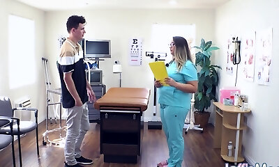 naughty nurse Carmen Caliente is ready for a firm and sticky stranger's manstick