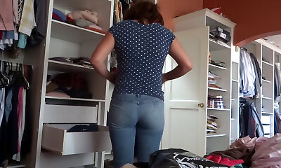 Beautiful Wife Searching Closet to Tempt Guy with her Phat Booty